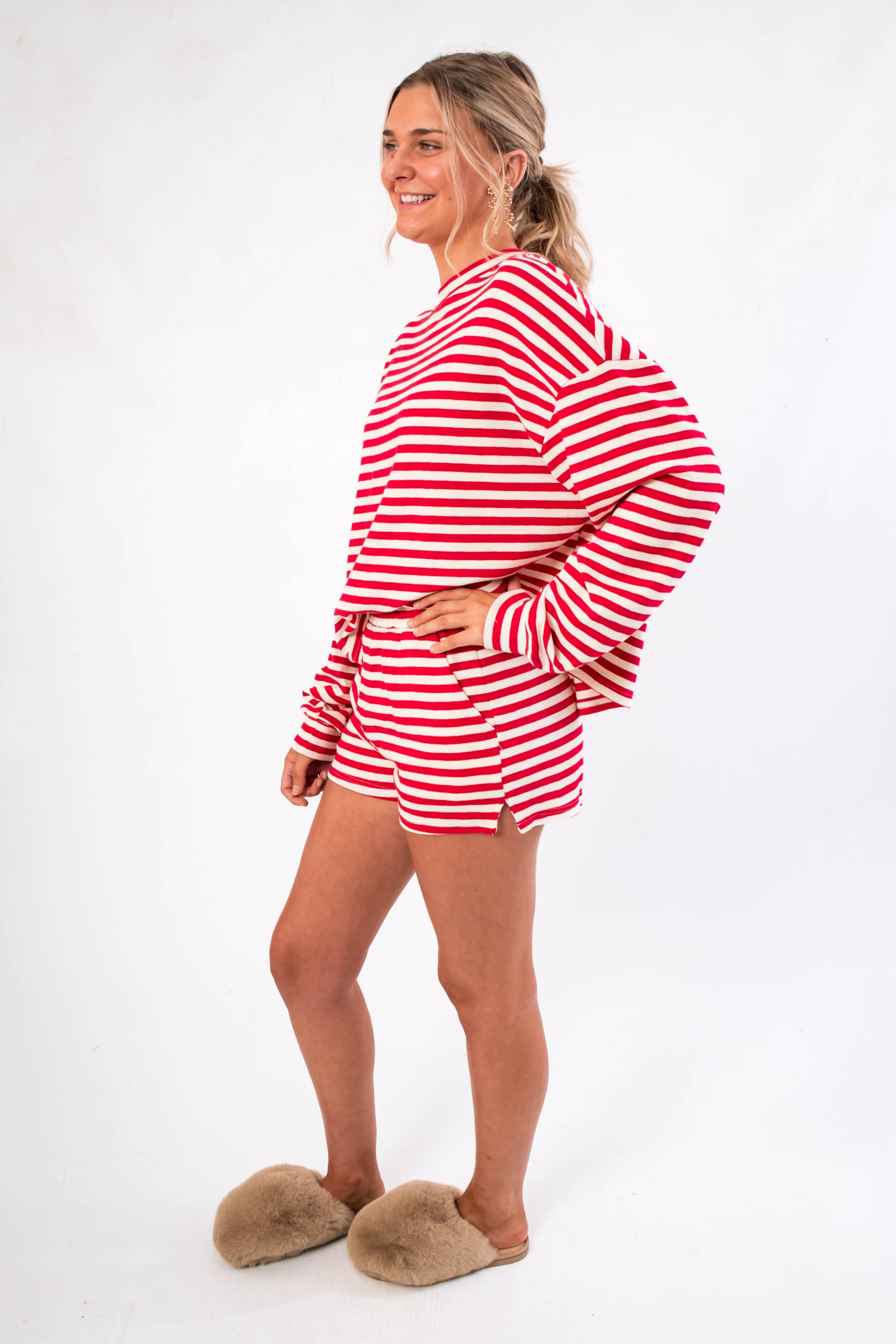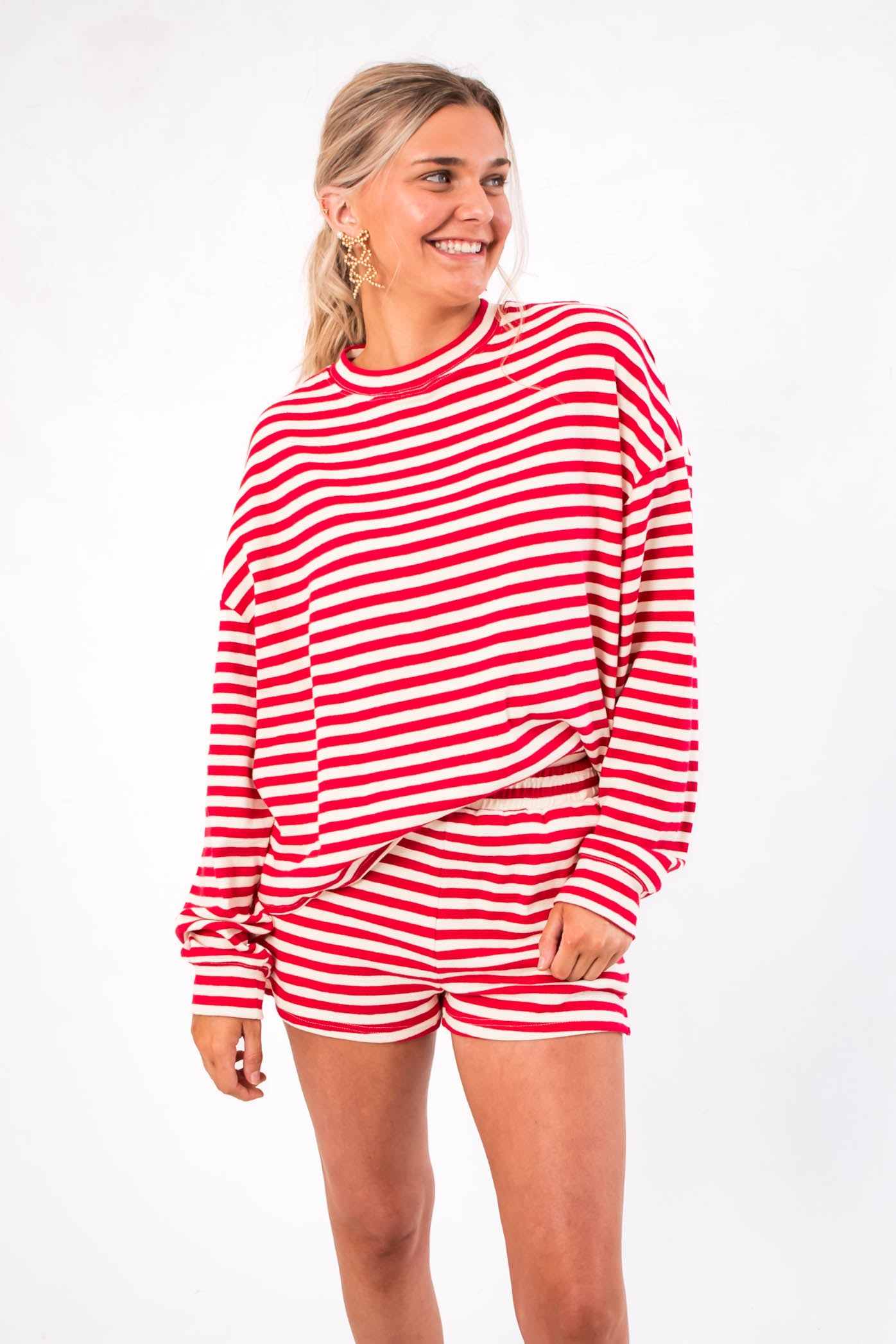 Aspen Morning Red Stripe Long Sleeve Top
