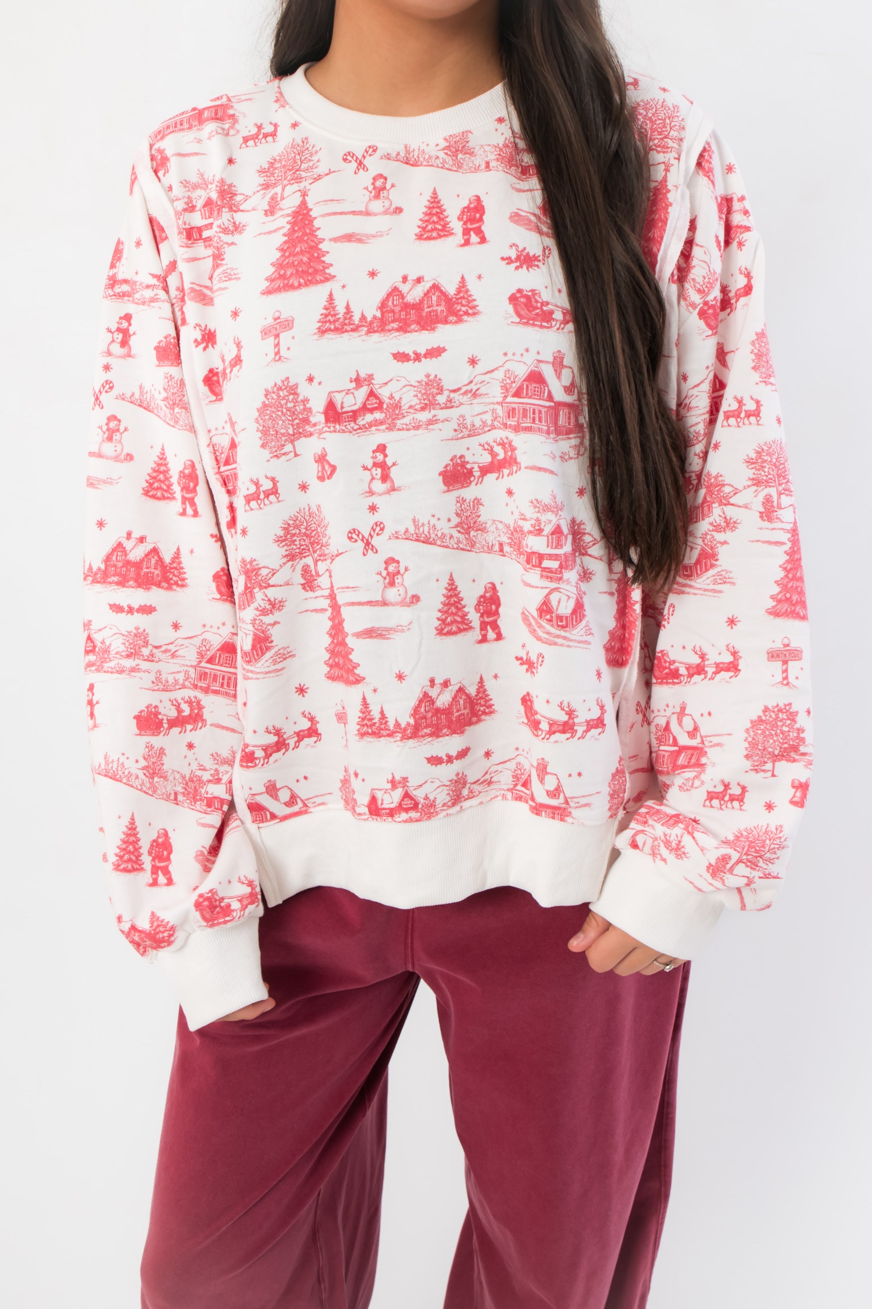Holiday Toile Red Patterned Sweatshirt