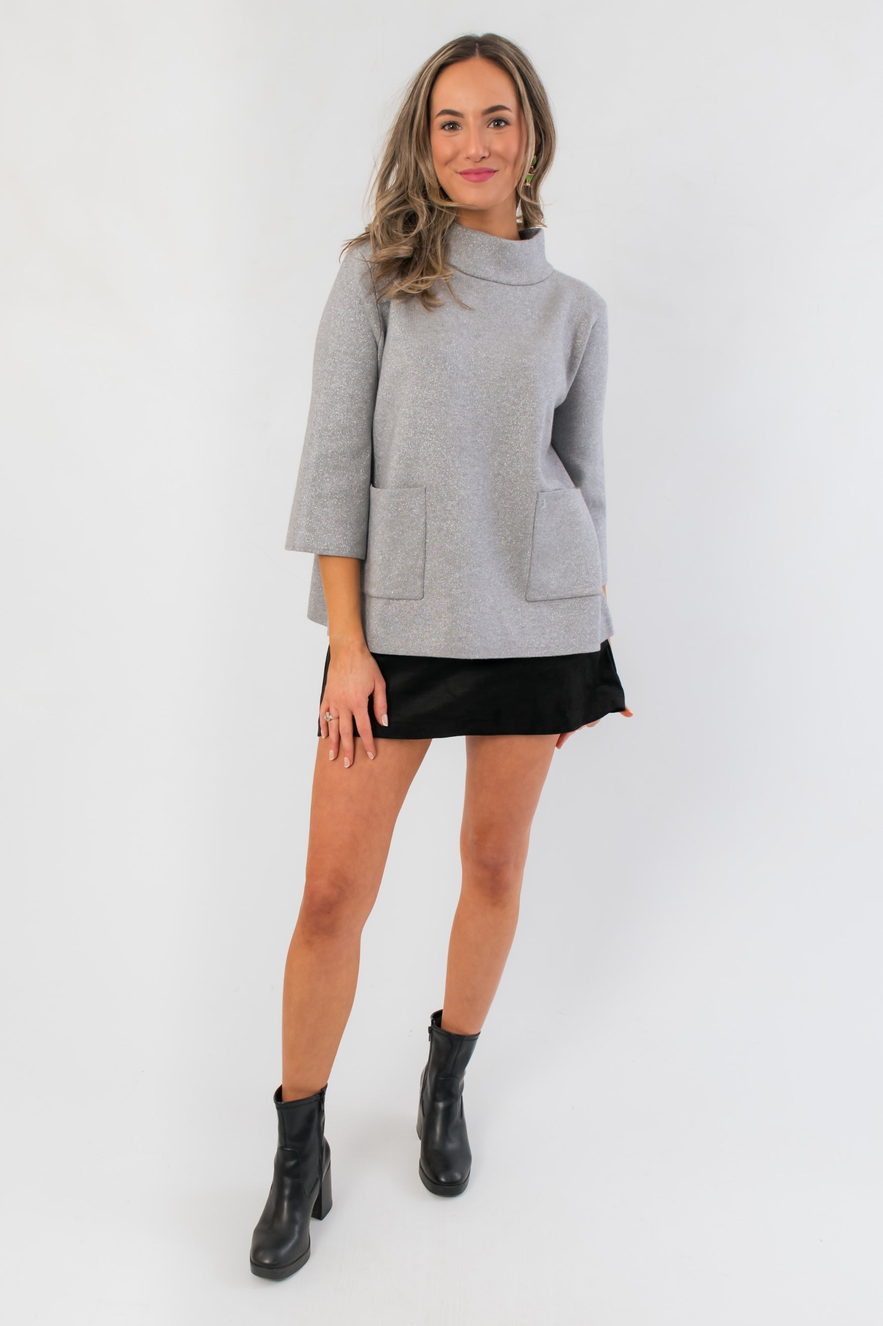 Easy to Love Silver Mock Neck Bell Sleeve Sweater