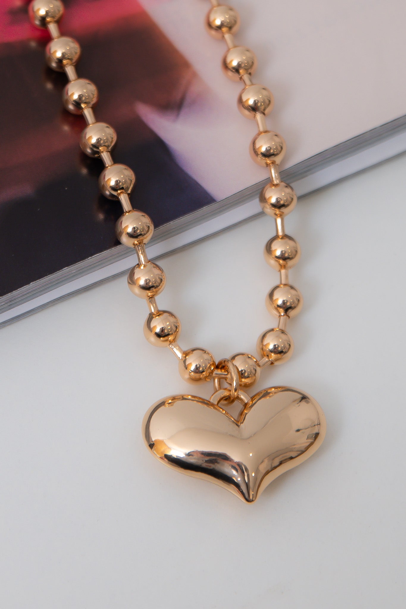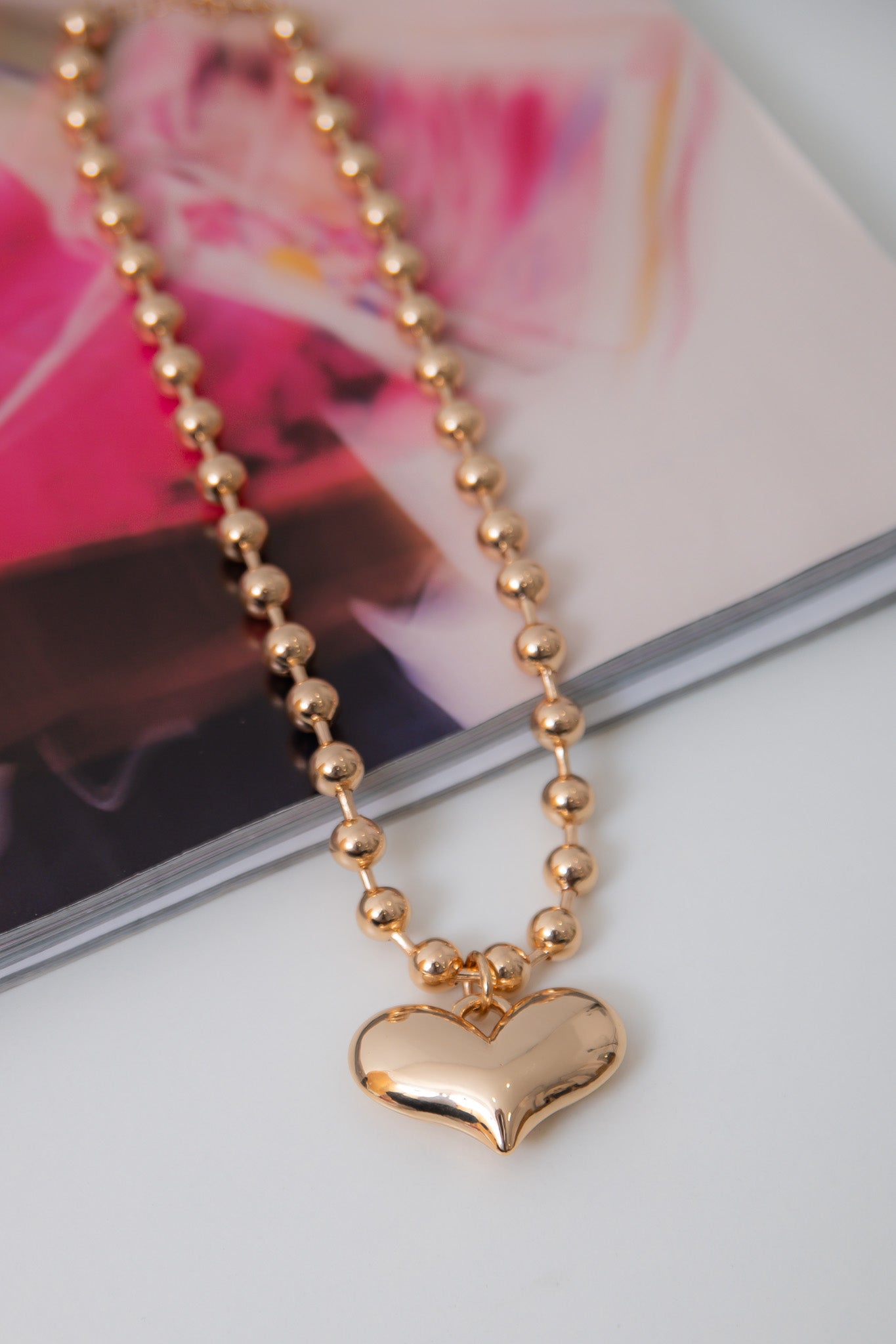 Puffy Heart Gold Necklace