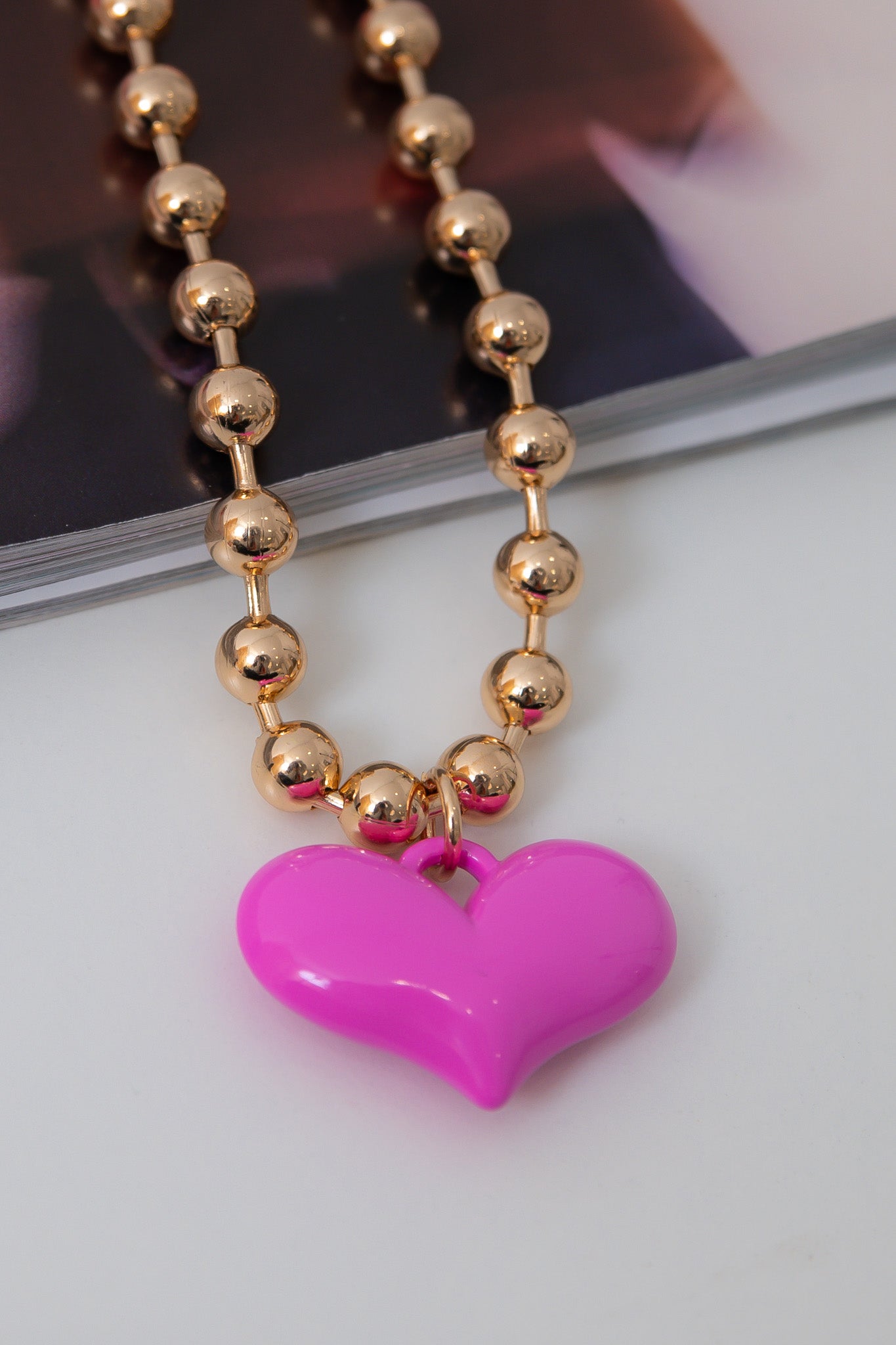 Pink Puffy Heart Necklace
