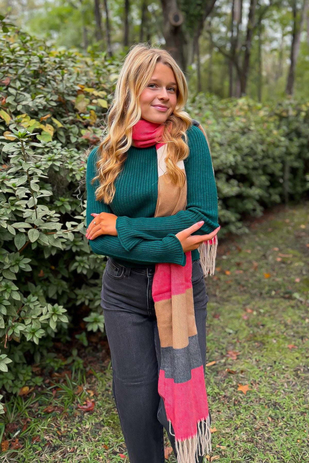 Taylor Emerald Green Ribbed Long Sleeve Top